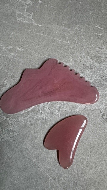 Each piece is handcrafted from rose quartz, known for its soothing and balancing energy. The heart-shaped stone is perfect for delicate facial work — think jawline, cheekbones and neck — while the comb-edged board works beautifully on the body to release tightness, stimulate circulation and enhance lymphatic flow.